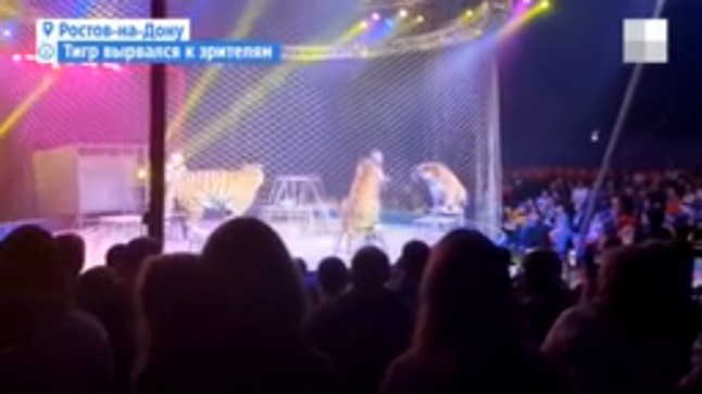 The footage was filmed inside a circus in the city of Rostov-on-Don,in southern Russia,on April 19.