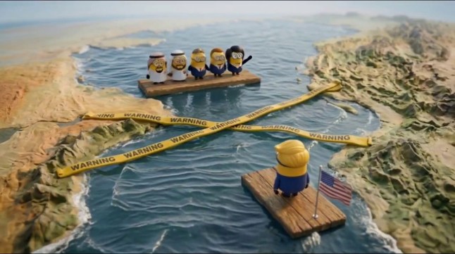 An Iranian minion blocked the Strait with a button (Picture: Iranian Embassy)It’s the latest clip in the onslaught of AI videos demonising the US for its involvement in the Middle East.One clip featured Jeffrey Epstein acting like ‘Venom’ – the movie character – latching on to Trump and telling him: ‘We’ve been bonded since the 90s. We don’t want those tapes to come out now.’The parasitic Epstein then demanded that Trump insult Republicans on Truth Social as Melania slept quietly beside him.‘I’ve given you war. I’ve given you chaos. I’ve done everything you asked me to,’ Trump pleaded. Eventually,Epstein’s parasite possesses Trump,before calling Benjamin Netanyahu and vowing to give him anything he wants.AI has become a major part of the war in Iran – with both Iran and the President of the United States sharing bizarre images.Trump hit back at his haters for portraying himself as Jesus – or as he claimed,a doctor – with yet another sacrilegious AI image.The US President just couldn’t resist posting another AI slop photo despite the almighty furore over his last one.