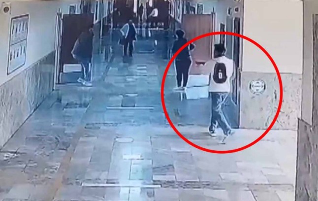 Teenagers run in fear after their former classmate burst into school armed with a shotgun and began firing randomly.